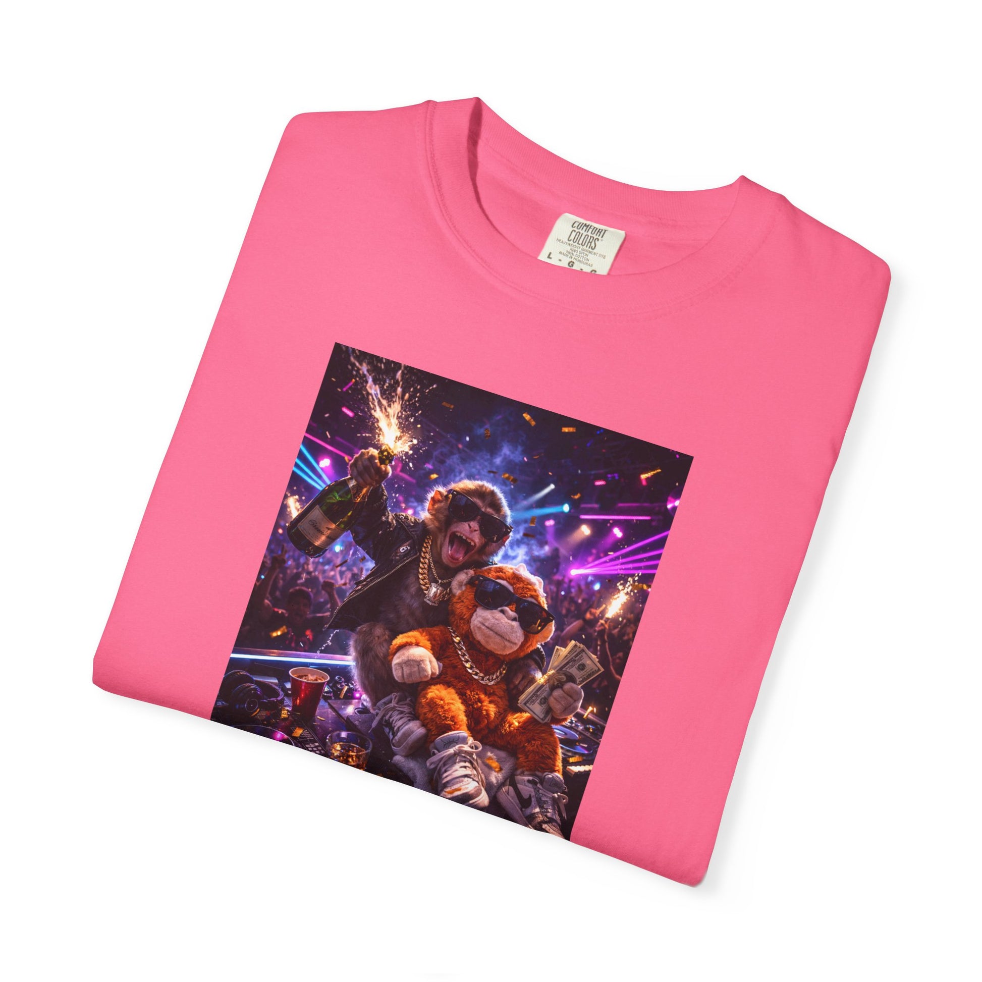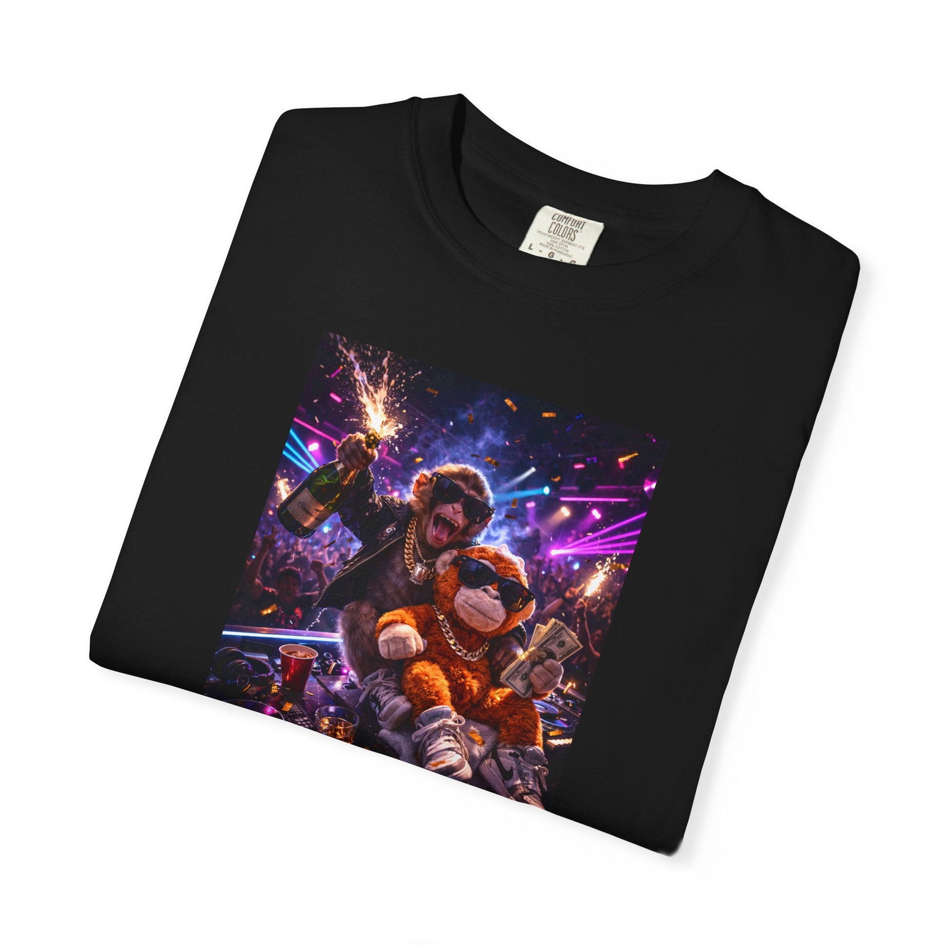 Punch running the booth, plush counting the wins. Champagne spraying, cash in hand, crowd losing it. This one is pure main character chaos — confidence, loyalty, and outside all in one frame.