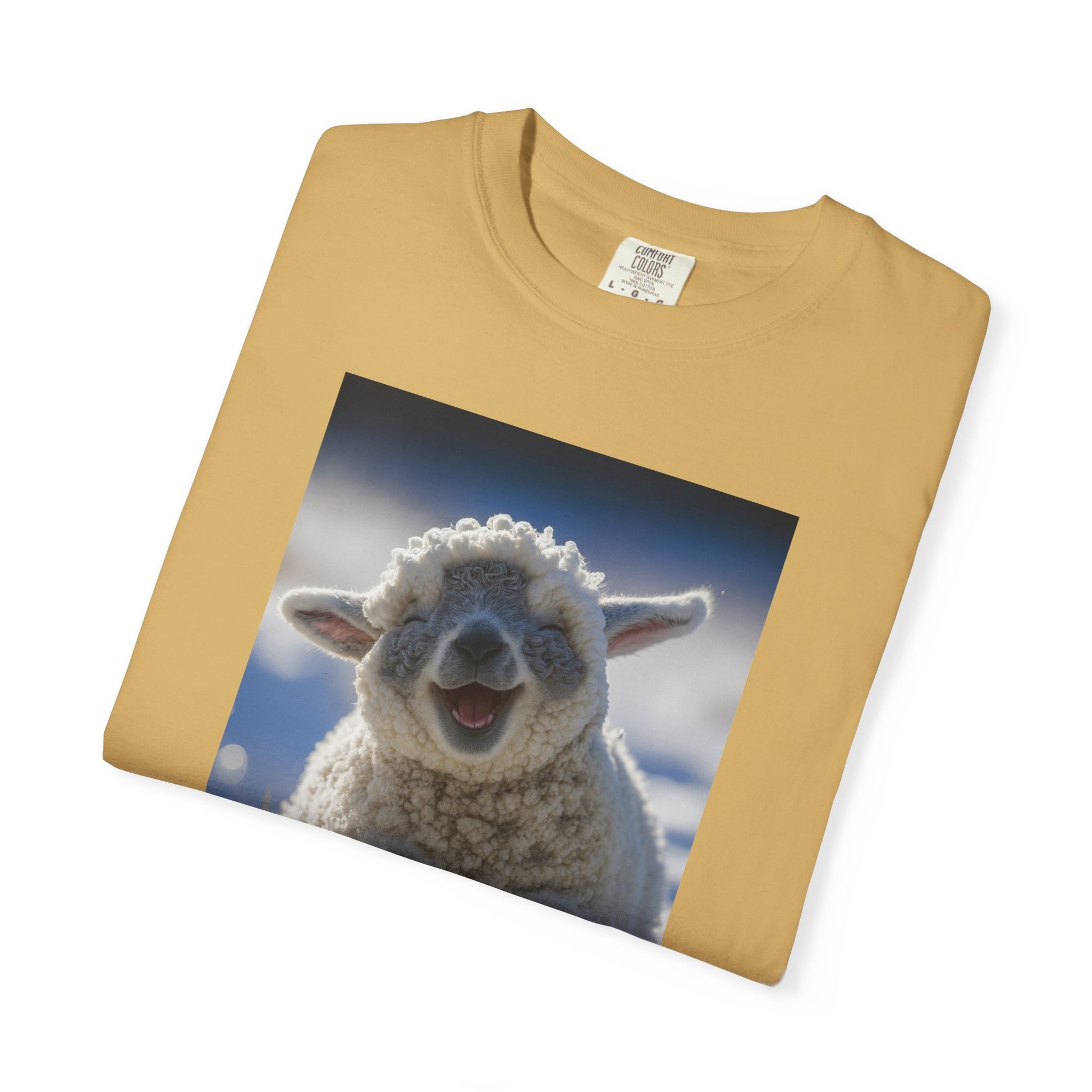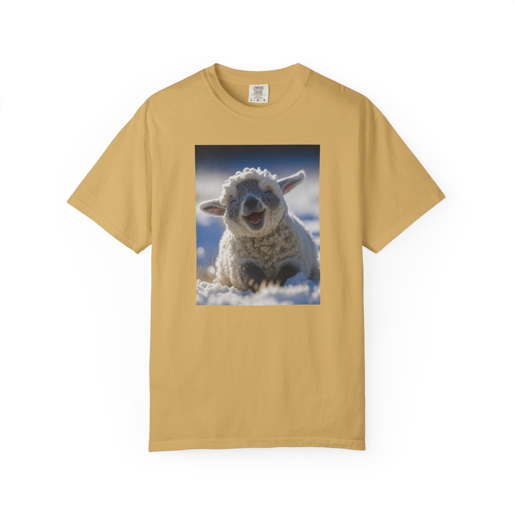 This snow-day lamb is living proof that happiness is 80% fluff and 20% not giving a damn. Caught mid-laugh, mid-chill, and mid-viral moment—this tee radiates serotonin from every stitch.
